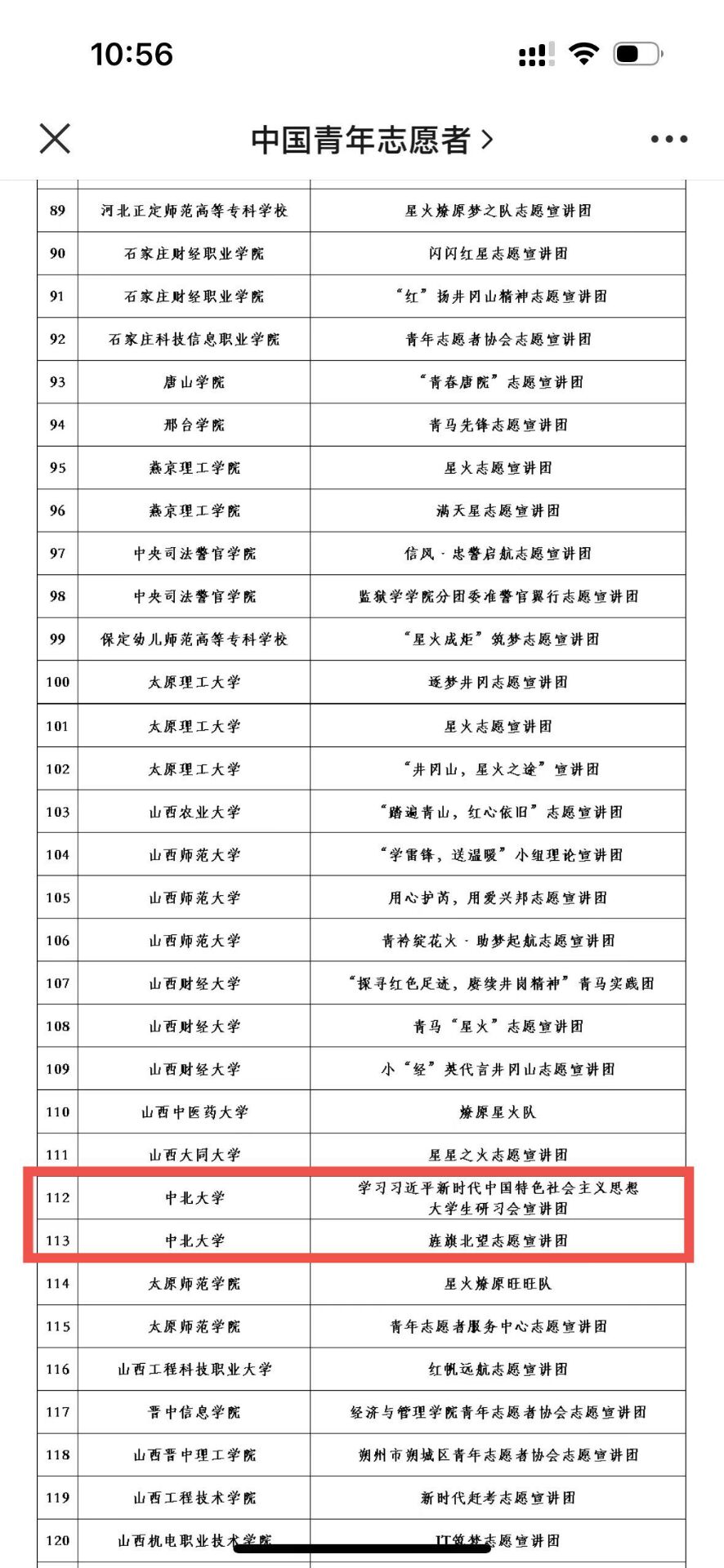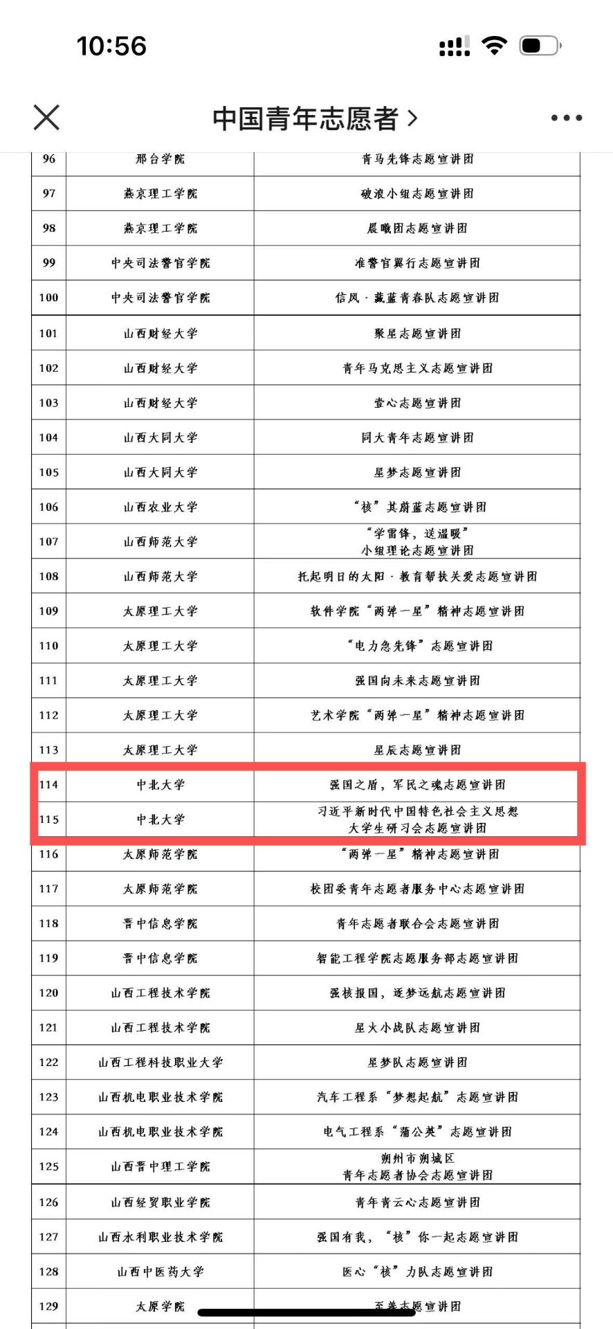 “学习习近平新时代中国特色社会主义思想大学生研习会宣讲团”“旌旗北望志愿宣讲团”入选井冈山精神志愿宣讲团。该宣讲团由团中央青年志愿者行动指导中心、全国青少年井冈山革命传统教育基地、井冈山管理局联合招募。共有来自全国650所高校的1615支团队申报。