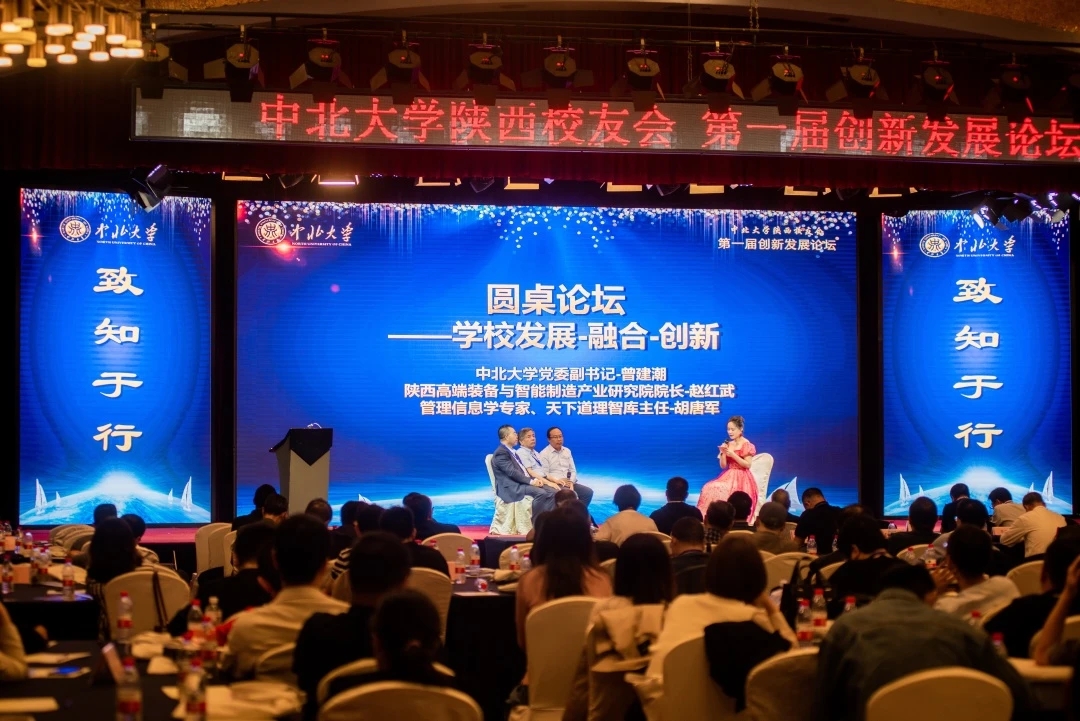 曾建潮代表学校向大会的举办表示祝贺,对在陕校友表达了亲切问候和良好祝愿。他重点介绍了学校过去一年在人才培养、师资队伍、学科建设、科学研究及对外交流等方面取得的诸多进展和重要成果。校友是学校的骄傲和宝贵资源,学校的发展建设离不开广大校友的支持与帮助,学校取得的成绩离不开广大校友的努力与贡献,建设双一流大学需要广大校友的积极参与,希望校友们继续关心支持学校事业发展,为母校的发展建设建言献策、同心助力,欢迎广大校友常回母校看看。圆桌论坛环节,曾建潮与管理信息学专家、天下道理智库主任胡唐军及陕西高端装备与智能制造产业研究院院长赵红武分别从学校发展、融合创新、校企合作、装备制造创新出发,展开了广泛而深入的讨论和交流。