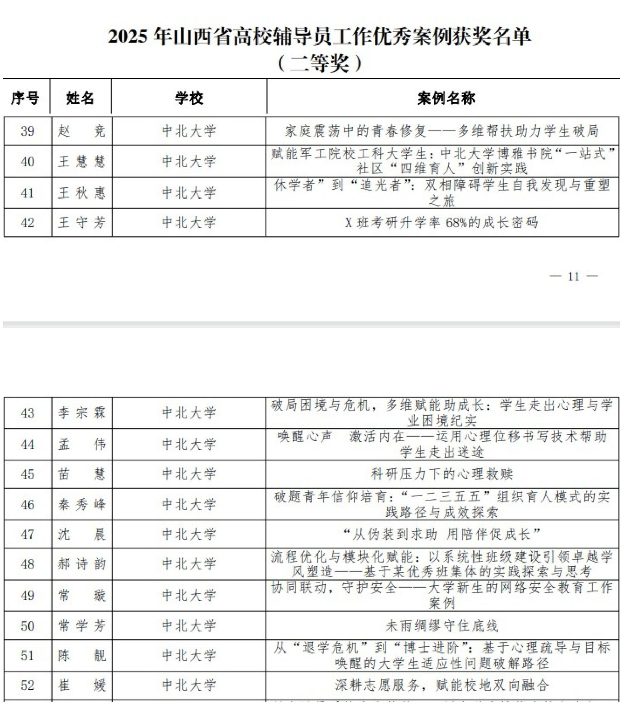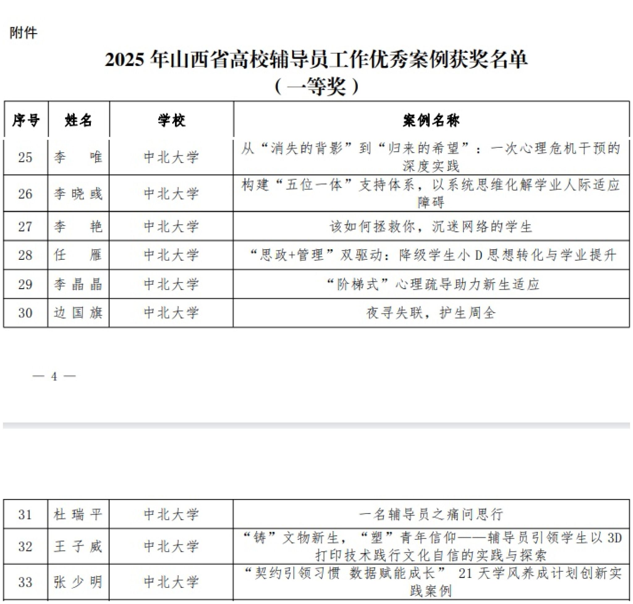 2025 年山西省高校辅导员工作优秀案例评选结果公布 我校表现突出