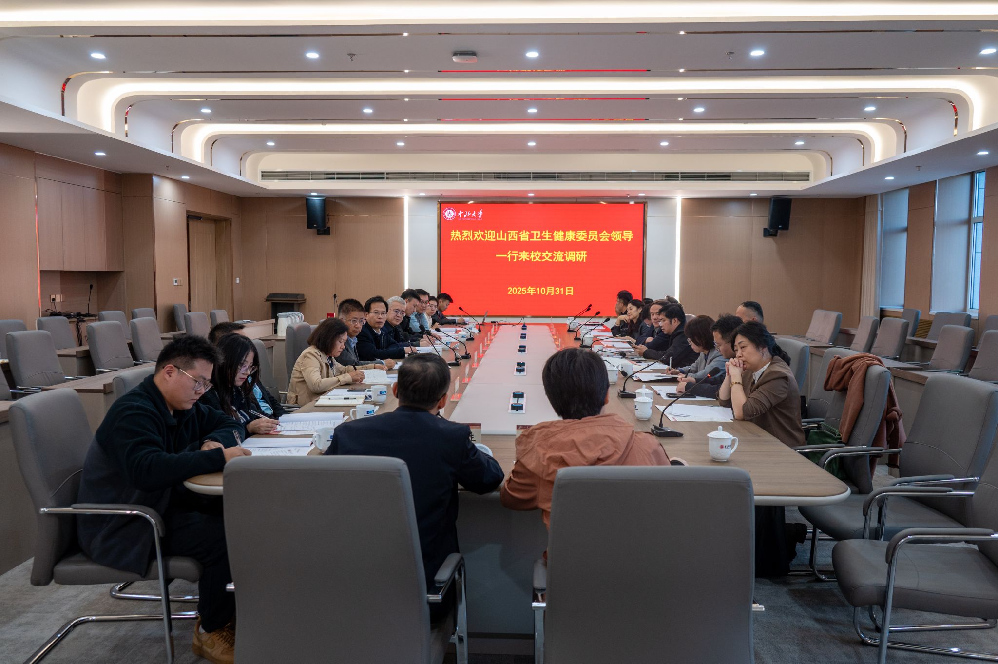 10 月 31 日 ,山西省卫生健康委员会党组成员、副主任张少然一行来校调研,座谈会在仪器与电子学院312会议室召开。校党委书记张晓永、党委副书记赵文军出席座谈会。省卫健委、山西医科大学第一附属医院、山西医科大学第二附属医院、山西省白求恩医院、山西省针灸医院等单位相关负责同志参会,会议由赵文军主持。