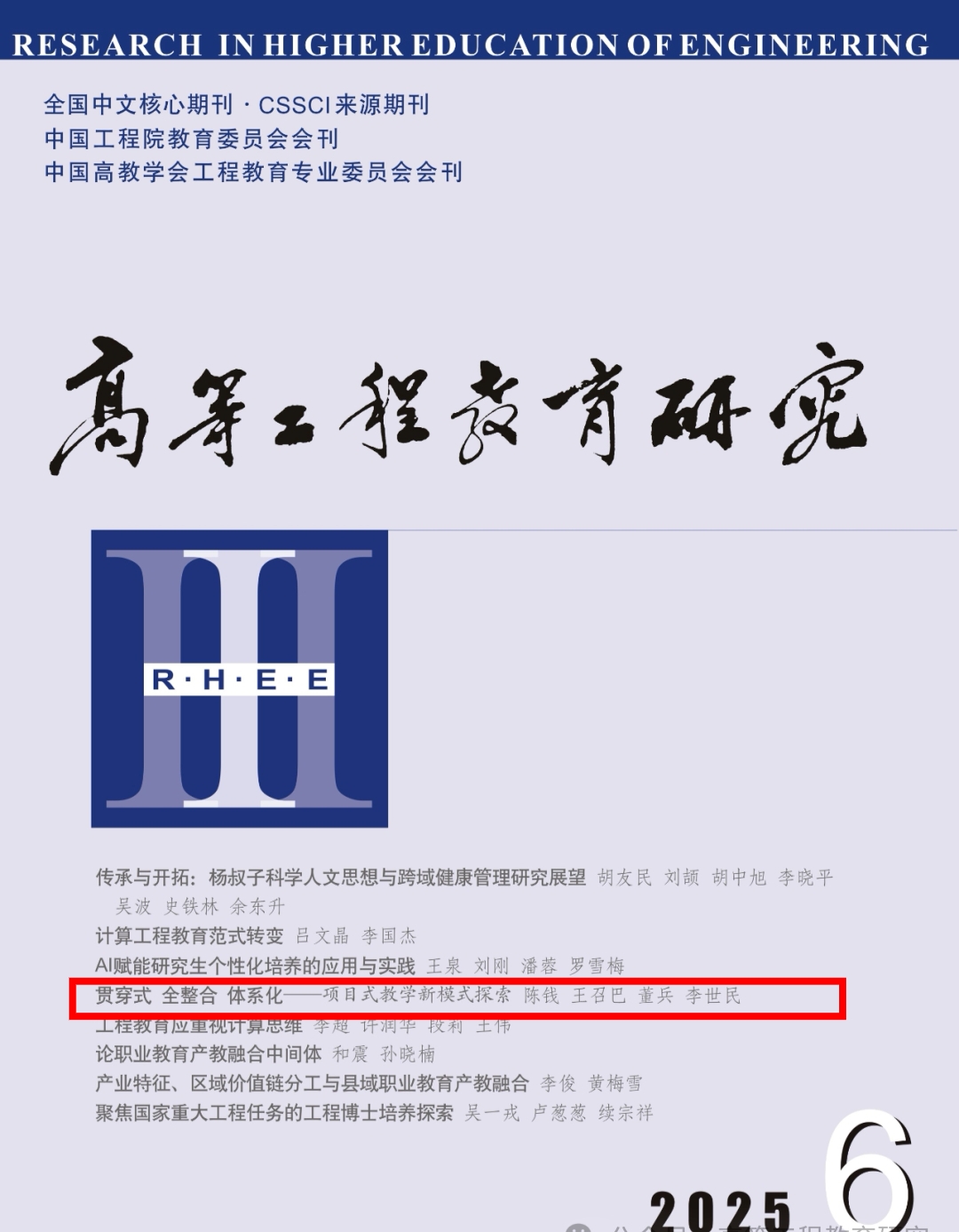 近日,校长陈钱在《高等工程教育研究》期刊(2025年第6期) 发表题为《贯穿式 全整合 体系化——项目式教学新模式探索》的高水平教育教学研究论文。该期刊为CSSCI来源期刊、全国中外文核心期刊、中国工程院教育委员会会刊、中国高教学会工程教育委员会会刊,是工程教育领域的权威学术平台。