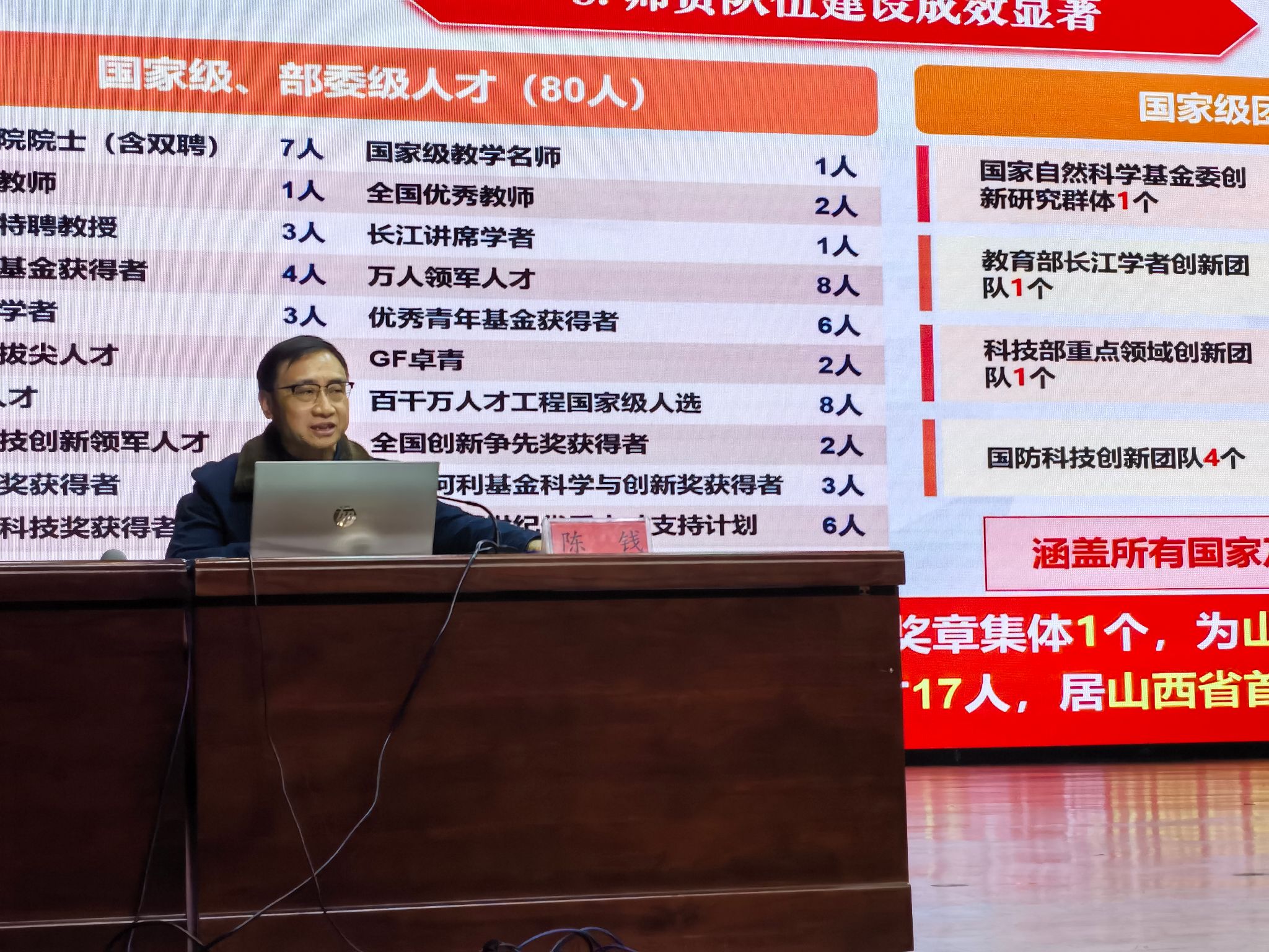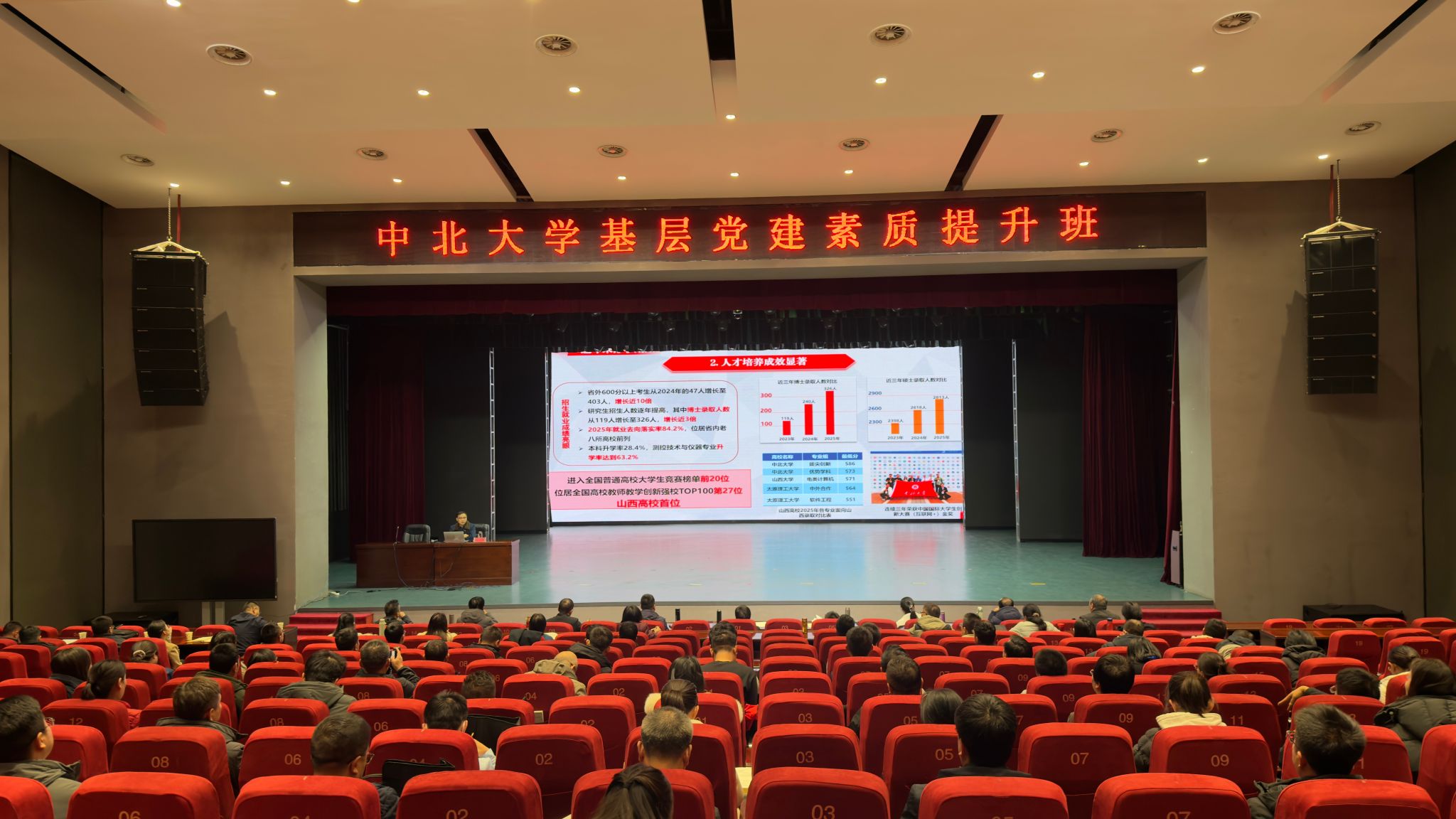 在长达3小时的授课中,陈钱全面总结近年学校办学成果,紧扣党的二十届四中全会“加快高水平科技自立自强,引领发展新质生产力”精神,深入剖析学校在学科建设、人才培养、科学研究、人才队伍、大学治理等领域,实现可持续高质量发展面临的挑战与问题。同时,从“一流学科建设”“一流人才培养”“一流科学研究”“一流师资队伍”“一流党建思政”五大维度,系统阐释学校争创“双一流”的发展思路与改革举措。就如何实现党建和业务高度融合,以一流党建引领“双一流”大学创建,陈钱提出四点要求:一是提高站位,统一思想。要充分认识“双一流”创建是教育强国建设的引领性、标志工程,是山西省委、省政府赋予我们的重大使命,是关乎学校发展命运和师生获得感幸福感的关键工程,提高政治站位、凝聚思想共识、集聚行动合力。二是时不我待,加速追赶。下一轮“双一流”评选即将启动,竞争态势愈加激烈,要当好“领头雁”,全力以赴、加速追赶,推动关键指标全面提升和突破。三是主动应变,积极谋划。要准确认识高等教育发展的新形势、新任务,“十五五”面临的新机遇、新挑战,紧跟国家战略部署、国防重大需求、山西高质量转型发展需求,主动识变、应变、求变,以科学务实的态度,提前谋划布局各方面的工作。四是打破惯性思维,跳出路径依赖。“双一流”冲刺的关键时期比任何时候都需要以思想破冰引领改革突围,要以敢于创新的锐气、敢于负责的担当,敢闯敢干的韧劲,推动各项工作创新发展、落实落地,全面跑出中北加速度。