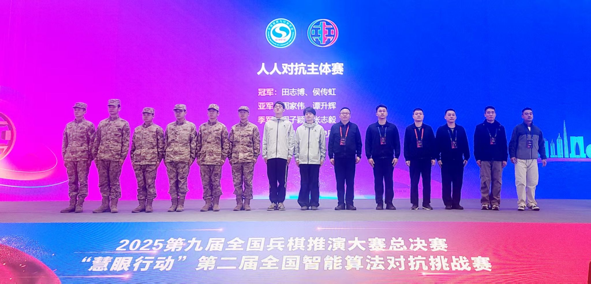 大赛由中国指挥与控制学会主办,以“虚拟演兵引领青年新风尚,智能博弈砺炼未来指挥官”为主题,自5月启动以来,历经校园赛、省赛区、全国晋级赛的层层筛选,最终汇聚全国25个省(直辖市、自治区)的2.3万名顶尖选手同台竞技。赛事设置人人对抗主体赛、智能算法挑战赛、手工推演比赛三大赛道共6个子赛项,依托“墨子未来指挥官”“灵弈智能推演系统”等专业平台,覆盖联合作战、空中作战、城市作战、远程导弹攻防博弈等前沿领域,规模与影响力均创历史新高。总决赛现场,国防大学、国防科技大学、陆军兵种大学、海军航空大学、空军航空大学、火箭军工程大学、武警工程大学、北京理工大学、南京大学、北京化工大学、湖南大学、中北大学等军地院校及中国电子科技集团智能科技研究院、四川虹信软件股份有限公司等研究团队同场竞技,最终决出一等奖58个、二等奖45个、三等奖140个。