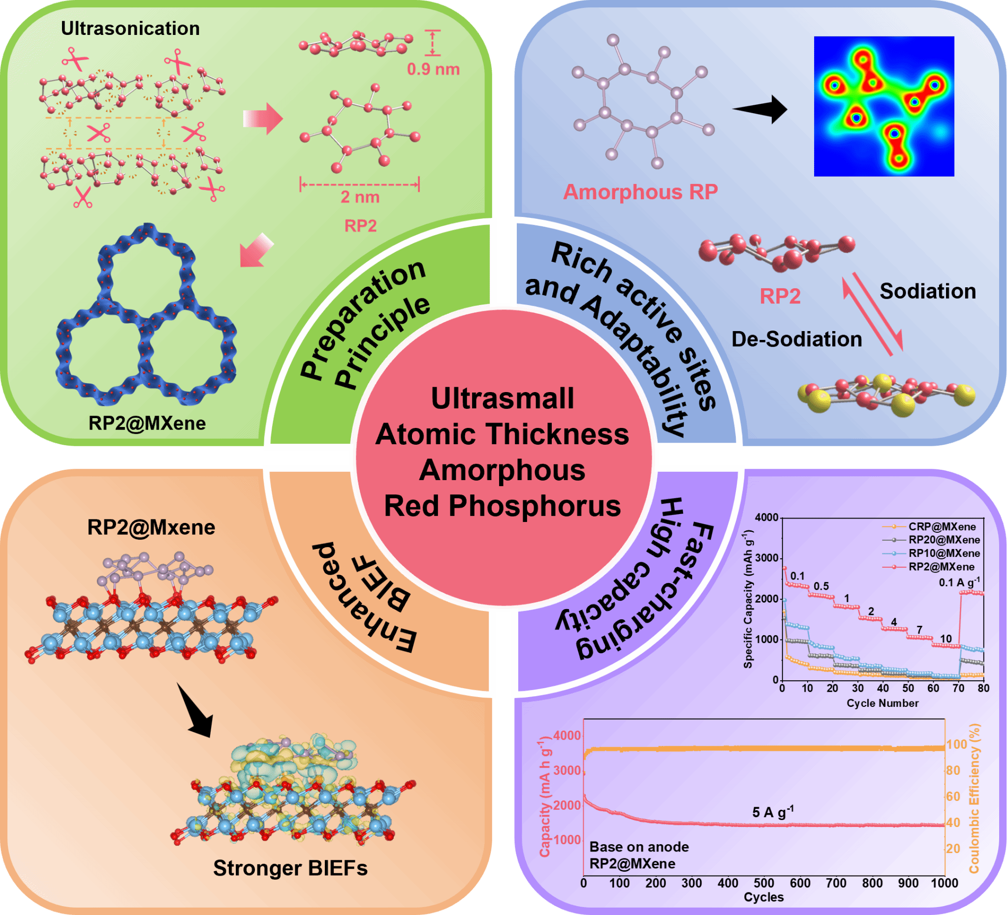 近日,我校能源与动力工程学院梁君飞教授团队在国际顶级期刊《Advanced Materials》(影响因子26.8)上发表了题为“2 nm Atomic Thickness Amorphous Red Phosphorus Enables Ultrafast and Ultrastable Sodium-Ion Storage”的重要研究成果,梁君飞教授、北京航天航空大学郭林院士、王华教授为论文共同通讯作者,中北大学为第一单位。