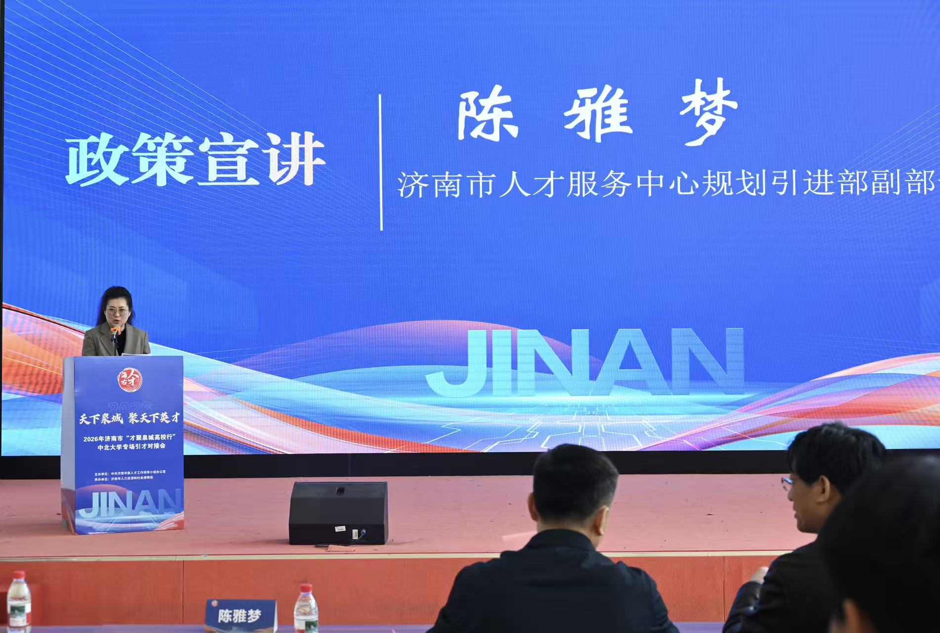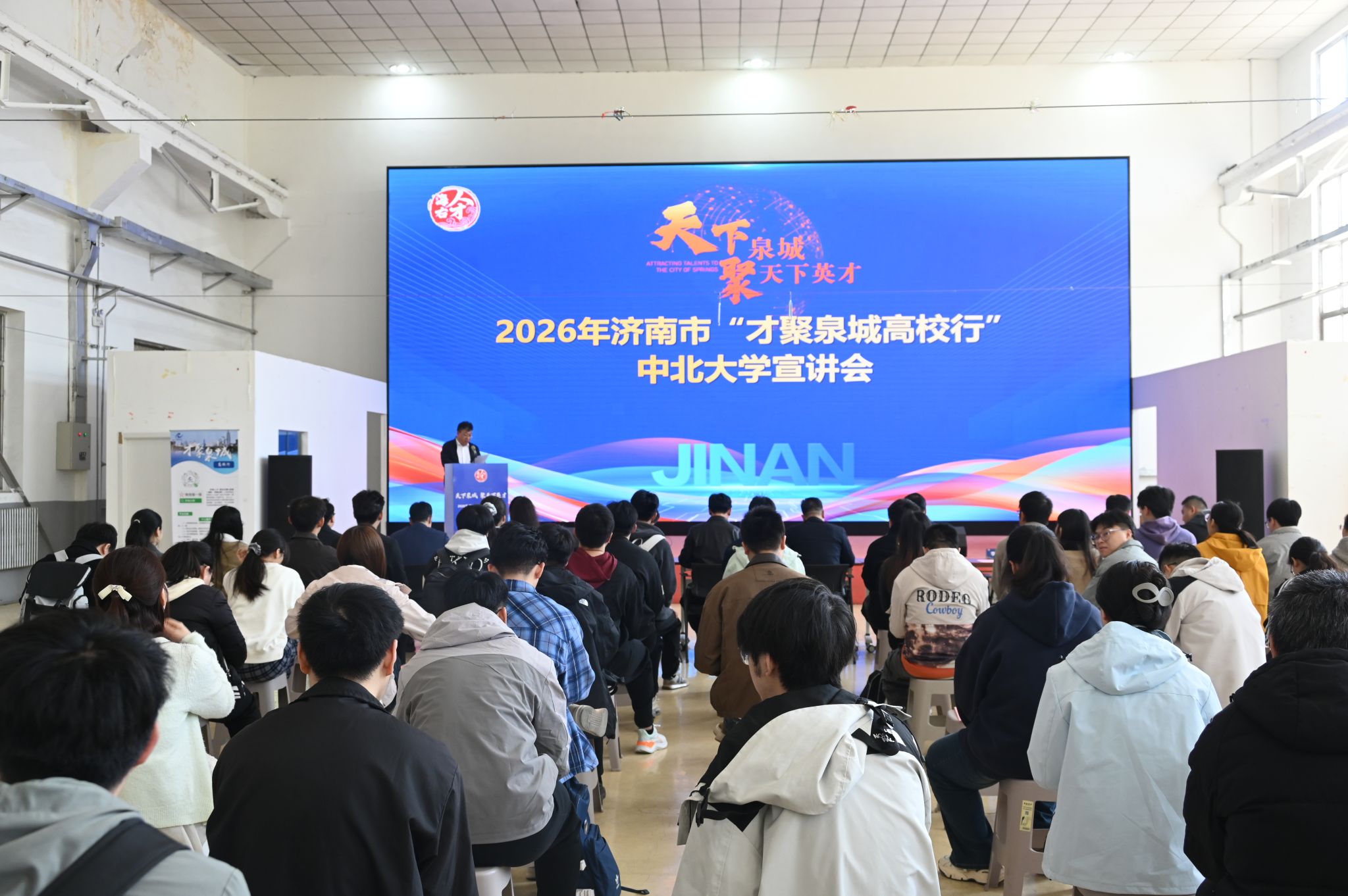 “才聚泉城高校行”活动宣讲会在东区训练馆举行。济南市政协副主席赵居安、我校副校长来志斌出席。活动由济南市人才服务中心规划引进部部长李文利主持。