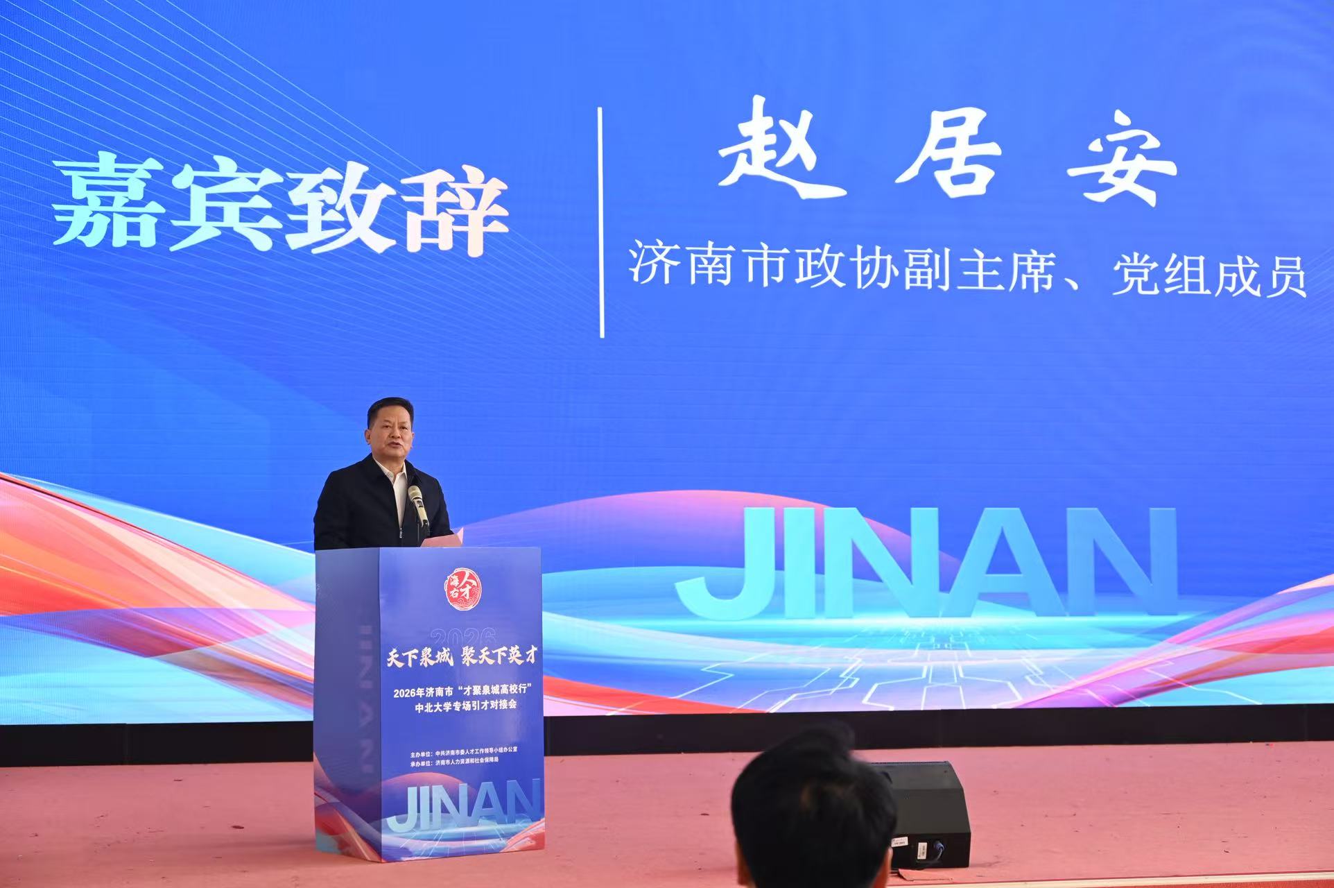 赵居安表示,中北大学享有“人民兵工第一校”美誉,学校现有优势学科与济南市人才需求高度契合。他用五个“刚刚好”,为济南画出一张暖心人才蓝图:济南有“刚刚好”的政策,让梦想落地生根;有“刚刚好”的平台,让创新乘风破浪;有“刚刚好”的产业,让智慧价值倍增;有“刚刚好”的人文,让心灵栖息安放;有“刚刚好”的生态,让奋斗全程无忧。他表示,济南市会以最贴心、最细心、最精心的服务,让同学在济南收获似锦未来。真诚期待同学选择济南、留在济南,在这里挥洒青春、成就梦想、共赢未来。