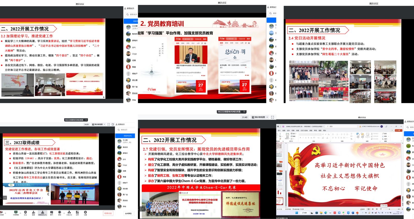 会上,学院十二个党支部书记依次就本支部基本情况、学习贯彻党的二十大报告精神、三会一课开展及党员作用发挥等2022年度重点工作完成情况以及下一年度工作计划进行了汇报。各位支部书记秉着求真务实的精神,展示了过去一年在党建工作方面采取的经验做法、取得的成效,并查摆问题和不足,提出下一步工作举措。