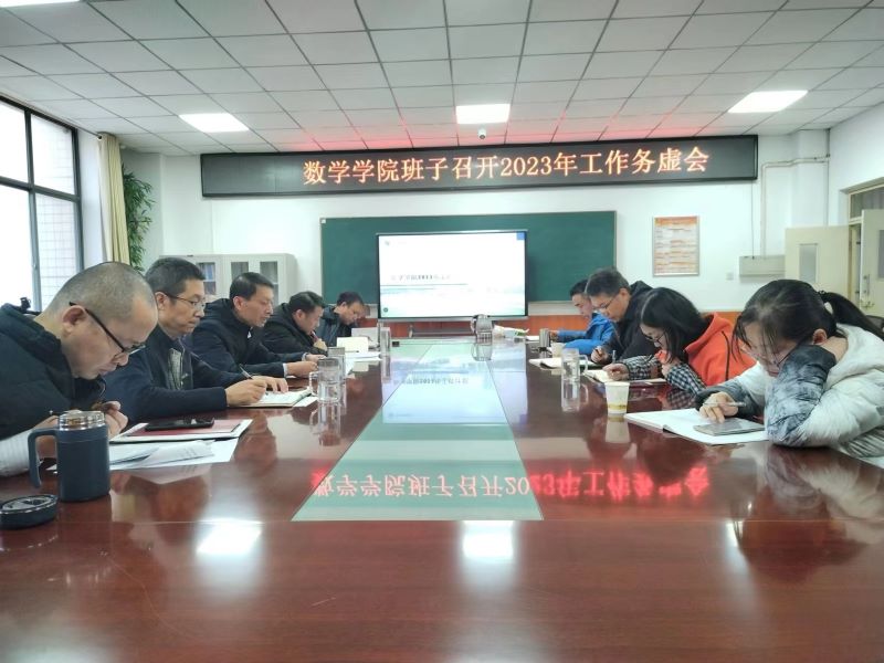 2023年2月17日,数学学院班子召开2023年度工作务虚会,科学谋划2023年度学院发展思路和工作重点。学院全体领导班子成员和各系主任出席会议,院党委书记薛亚奎主持会议。