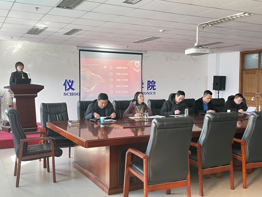 春暖花开,新学期伊始,仪器与电子学院在开学的第一天召开全员教工大会。仪电人齐聚在学院1115会议室,盘点2022年的收获,谋篇布局2023年的新征程。会议由学院副书记杜瑞平主持。