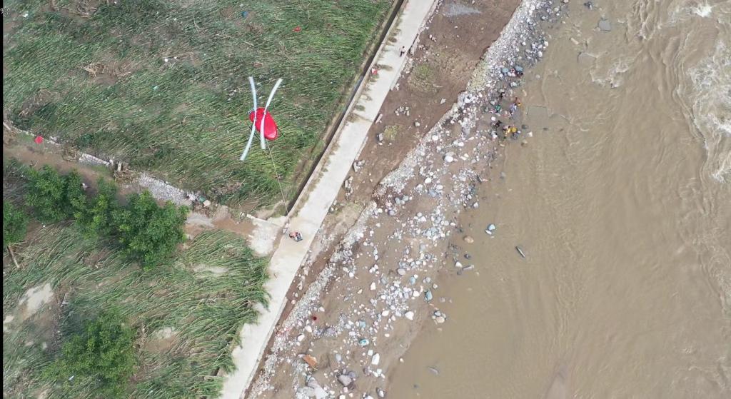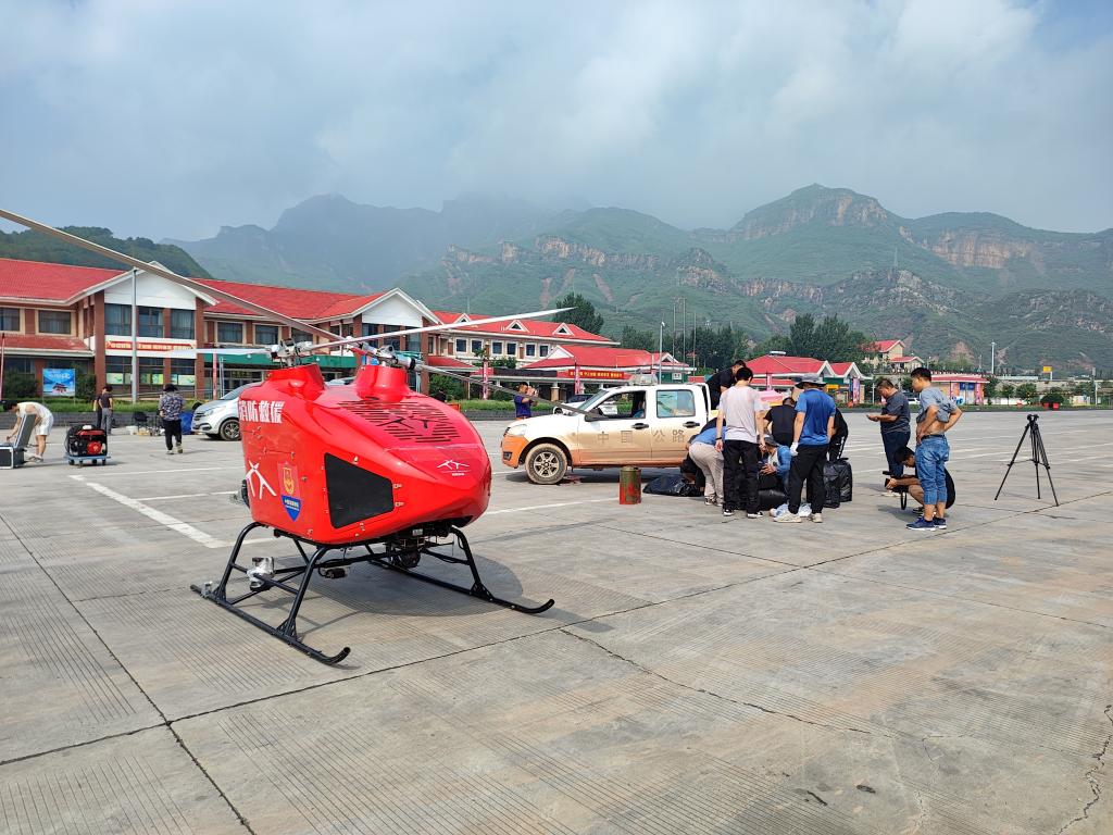 8月2日上午9时,中北大学航空宇航学院产学研项目JZ-550无人直升机挂载救援物资从野三坡服务区起飞,快速飞向涞水县受灾点,抵达目标区域上空后,通过绳索将食品、药品、鸡蛋、饮用水、汽油和发电机等救援物资空中精准投送,本次救援共计往返灾区9次,持续作业总时长达8小时,空投救援物资近1000斤,克服了山区恶劣环境,快速高效地完成了救援物资的投送任务,为本次抢险救灾工作提供了有力的航空技术支撑和能力保障。有效解决了老人、孕妇、婴幼儿在内总计200多人急需物资与生活保障。