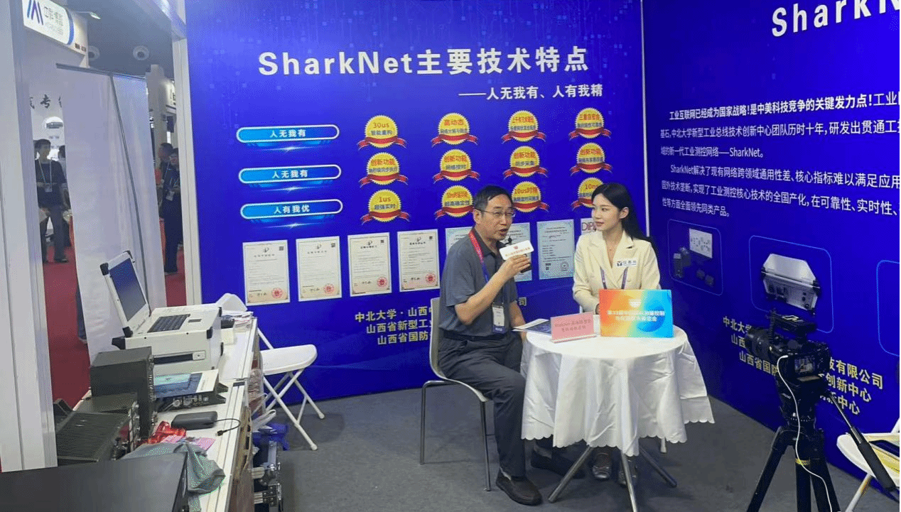 在这场行业盛宴中,中北大学携其核心产品 SharkNet 工业测控网络精彩亮相,成为展会的一大亮点。中北大学的展位前始终人气爆棚,热闹非凡。众多参观者被 SharkNet 独特的技术魅力所吸引,纷纷驻足围观、咨询交流。
