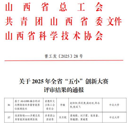 双星闪耀!仪器与电子学院两项创新成果获山西省“五小”创新大赛一等奖