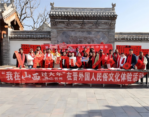 2026年2月11日,腊月廿四南方小年之际,年味已漫溢晋地。为让来华留学生深度感受中国农历春节传统文化魅力,体验地道晋北年俗,搭建中外文化交流桥梁,山西省人民对外友好协会与中北大学共同举办了 “我在山西过大年——在晋外国人民俗文化体验活动”。国际教育学院带队来自巴基斯坦、孟加拉国、喀麦隆等国的20余名留学生赴忻州古城沉浸式体验中国年。古城红灯高挂、春联满巷,锣鼓声与欢笑声交织,喜庆祥和的新春氛围为留学生铺展出生动的中国年画卷。