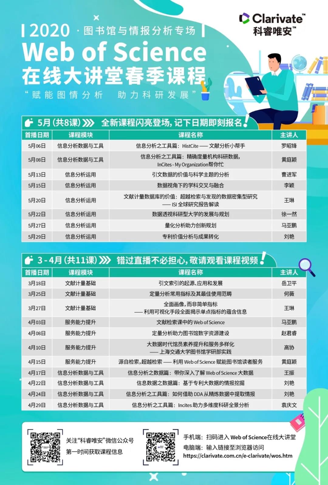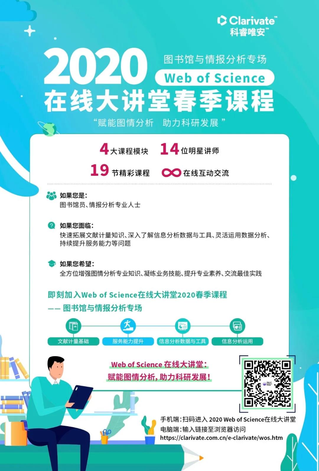图书馆与情报分析工作,是促进我国教育和科研事业发展的重要保障。中北大学图书馆联合科睿唯安 Web of Science 在线大讲堂 —— 图书馆与情报分析专场课程,结合实践、注重交流、革故鼎新,旨在帮助广大图书馆和图情专业人士全方位增强图情分析专业知识、凝练业务技能、提升专业素养、交流最佳实践。