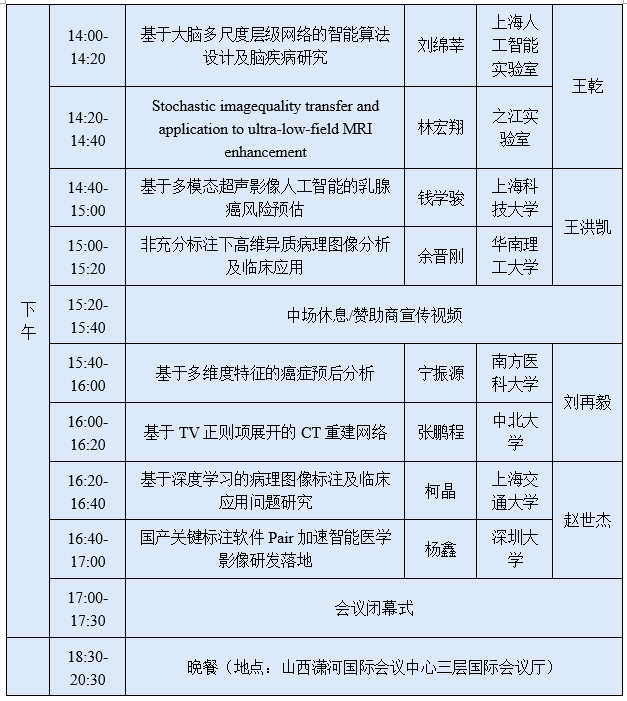 第十届医学图像计算青年研讨会日程安排