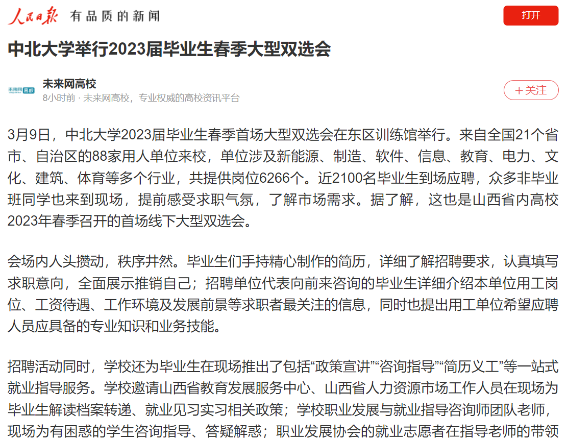 【人民日报】中北大学举行2023届毕业生春季大型双选会