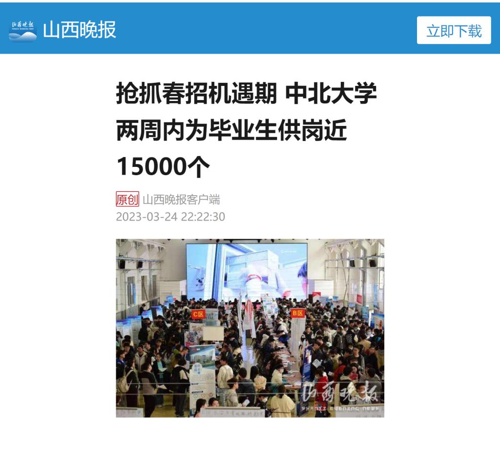 【山西晚报】抢抓春招机遇期 中北大学两周内为毕业生供岗近15000个