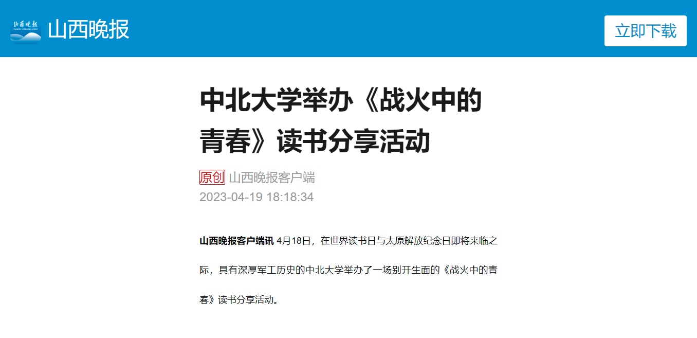 【山西晚报】中北大学举办《战火中的青春》读书分享活动