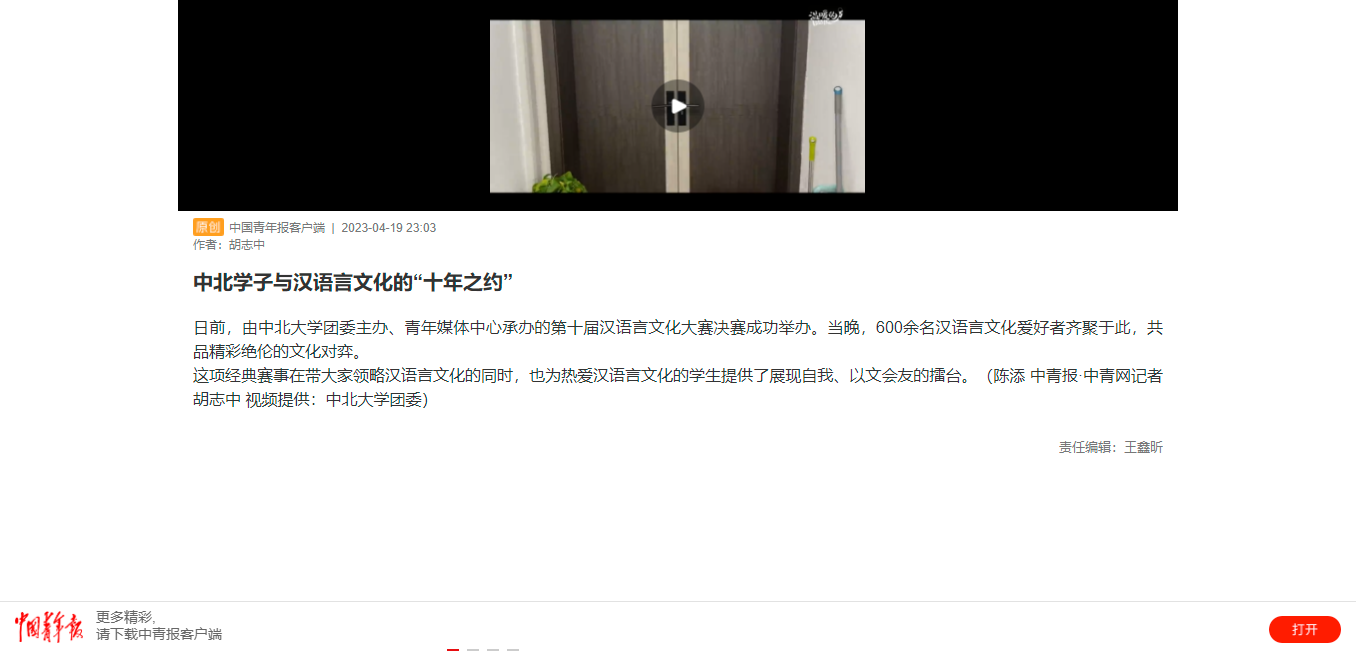 【中国青年报】中北学子与汉语言文化的“十年之约”