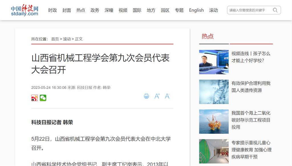 【中国科技网】山西省机械工程学会第九次会员代表大会召开