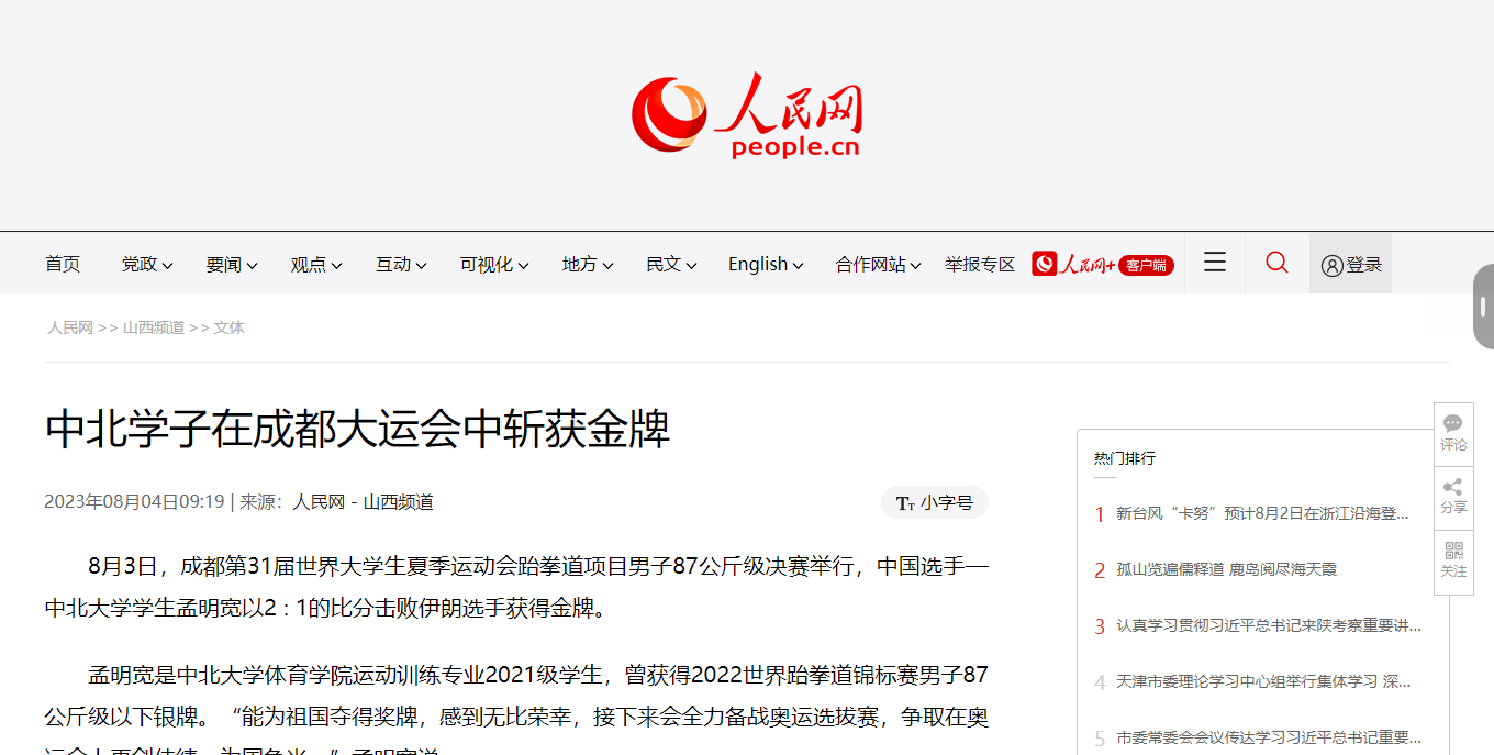 【人民网】中北学子在成都大运会中斩获金牌