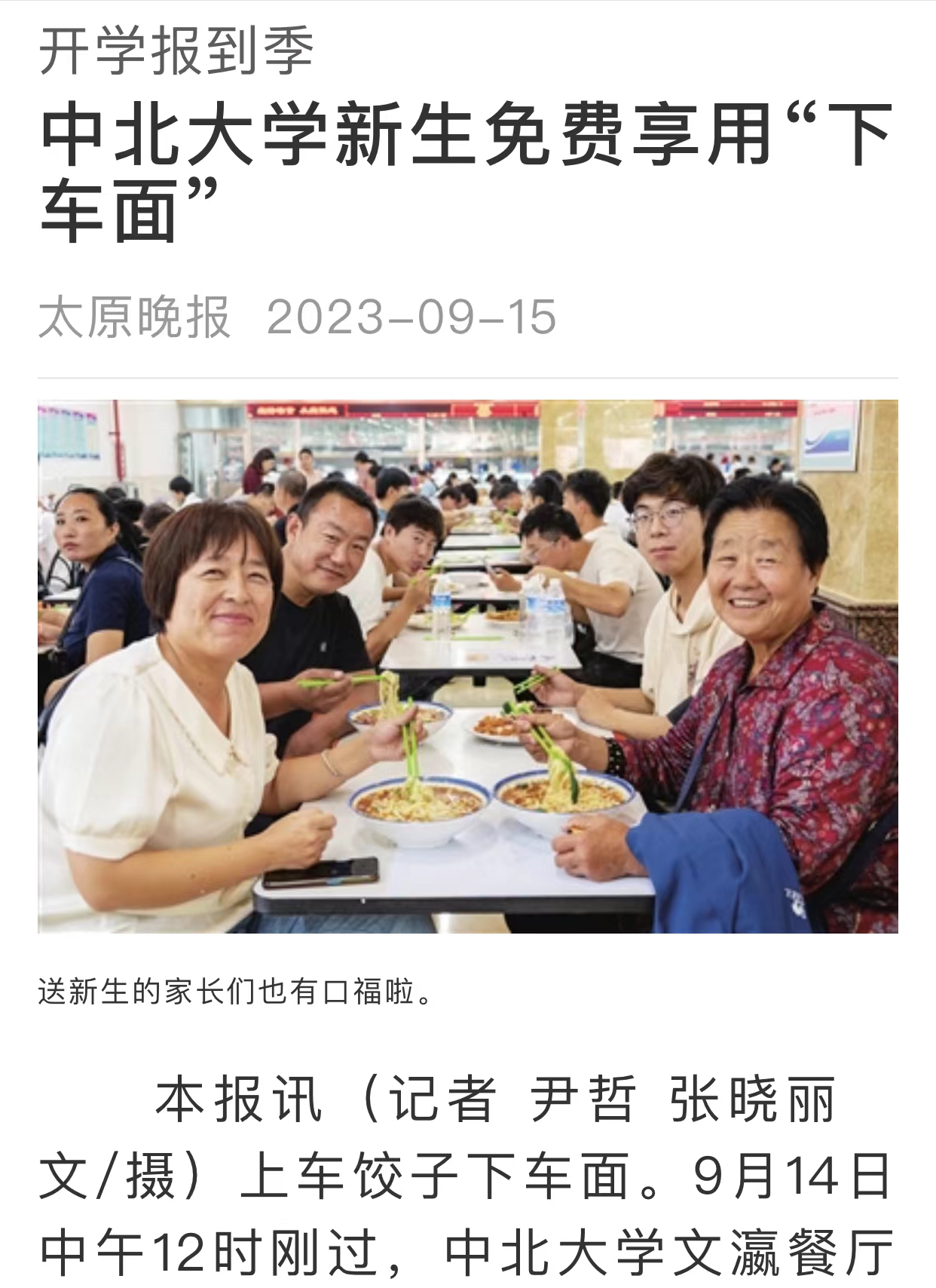 【太原晚报】开学报到季 中北大学新生免费享用“下车面”