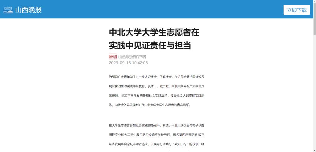 【山西晚报】中北大学大学生志愿者在实践中见证责任与担当