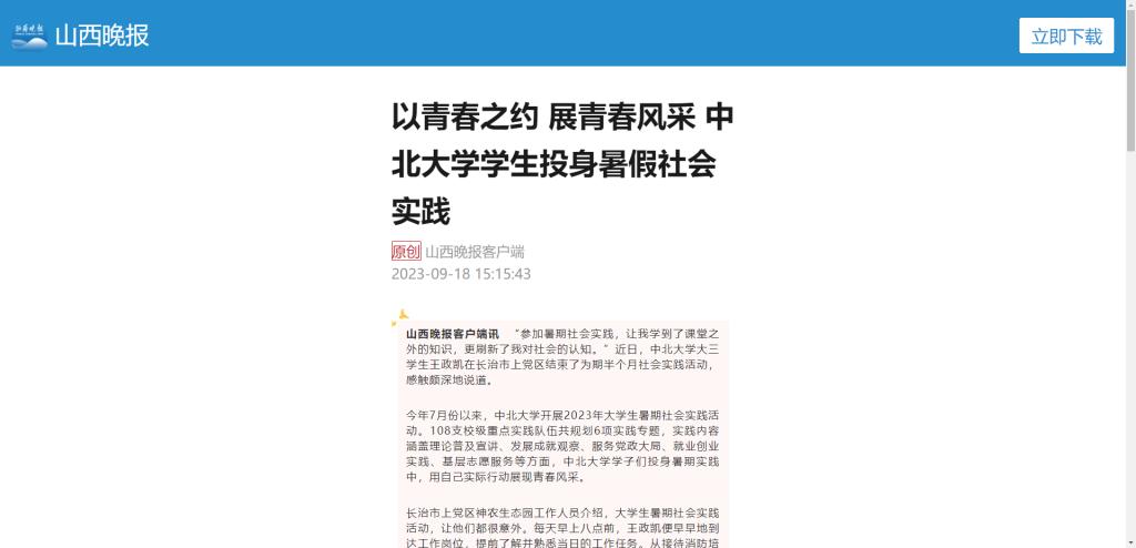 【山西晚报】以青春之约 展青春风采 中北大学学生投身暑假社会实践