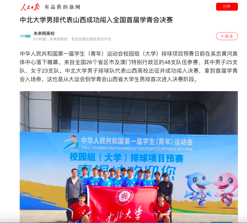 【人民日报】中北大学男排代表山西成功闯入全国首届学青会决赛