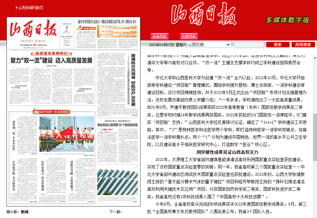【山西日报】【高质量发展调研行】聚力“双一流”建设 迈入高质量发展