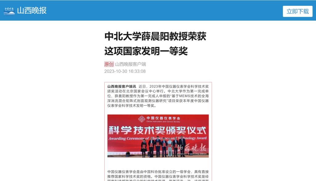 【山西晚报】中北大学薛晨阳教授荣获这项国家发明一等奖