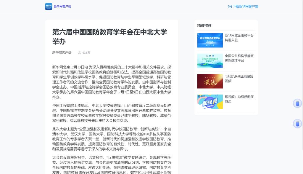 【新华网】第六届中国国防教育学年会在中北大学举办