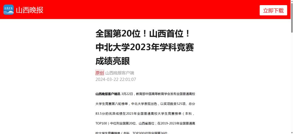 【山西晚报】全国第20位!山西首位! 中北大学2023年学科竞赛成绩亮眼
