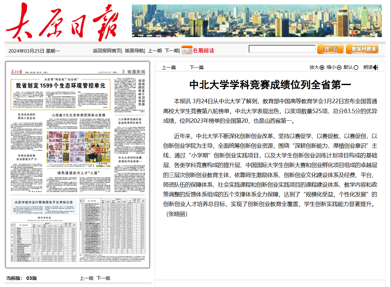 【太原日报】中北大学学科竞赛成绩位列全省第一