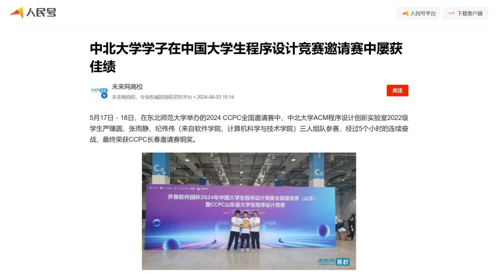 【人民号】中北大学学子在中国大学生程序设计竞赛邀请赛中屡获佳绩