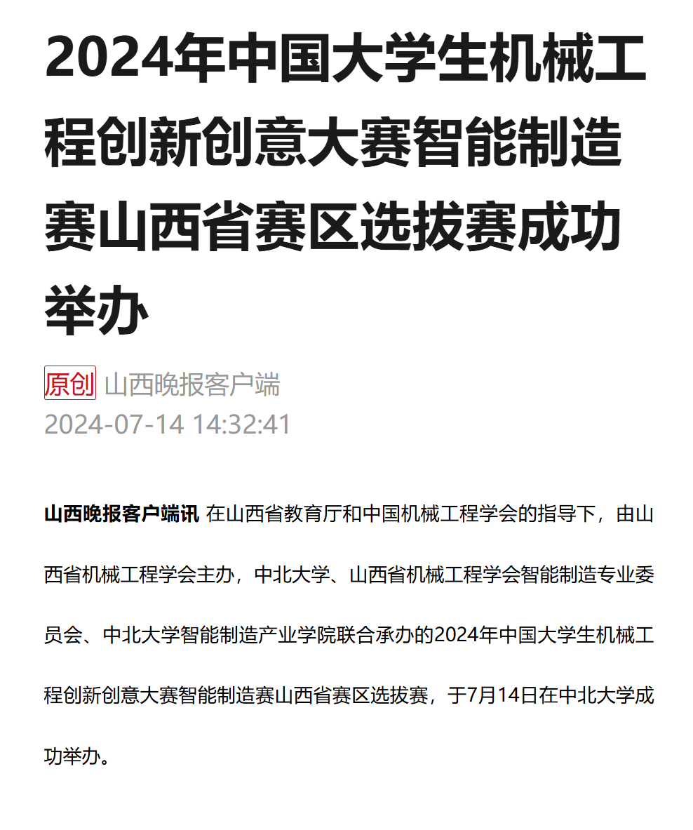 【山西晚报】2024年中国大学生机械工程创新创意大赛智能制造赛山西省赛区选拔赛成功举办