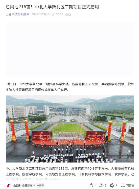 【山西科技报新媒体】总用地216亩!中北大学新北区二期项目正式启用