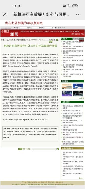 【科学网】新算法可有效提升红外与可见光视频融合质量