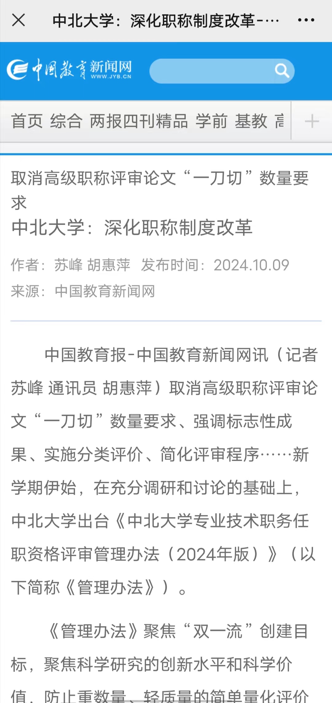【中国教育新闻网】取消高级职称评审论文“一刀切”数量要求 中北大学:深化职称制度改革
