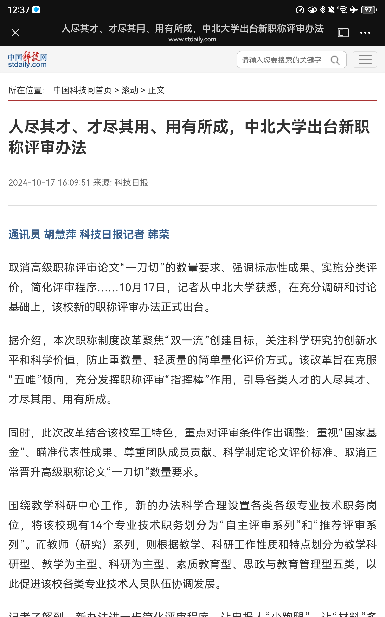 【中国科技网】人尽其才、才尽其用、用有所成,中北大学出台新职称评审办法