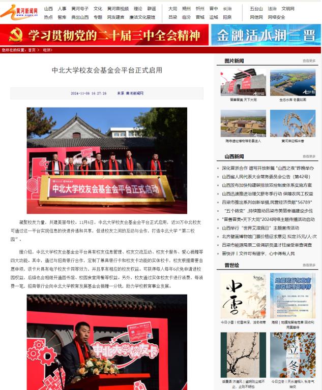 【黄河新闻网】中北大学校友会基金会平台正式启用