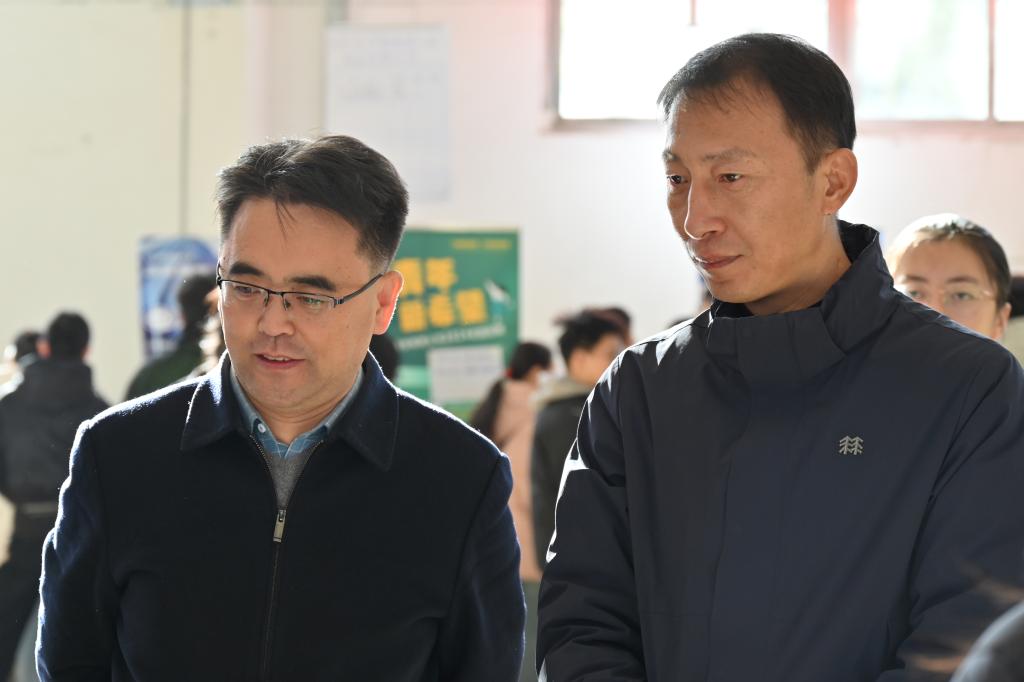 11月28日上午,山西省“就”在金秋“职”引未来招聘活动暨中北大学2025届毕业生大型双选会在东区训练馆举行,山西省教育厅学生处处长武振杰到现场指导,同时调研学校就业创业服务基地建设情况。