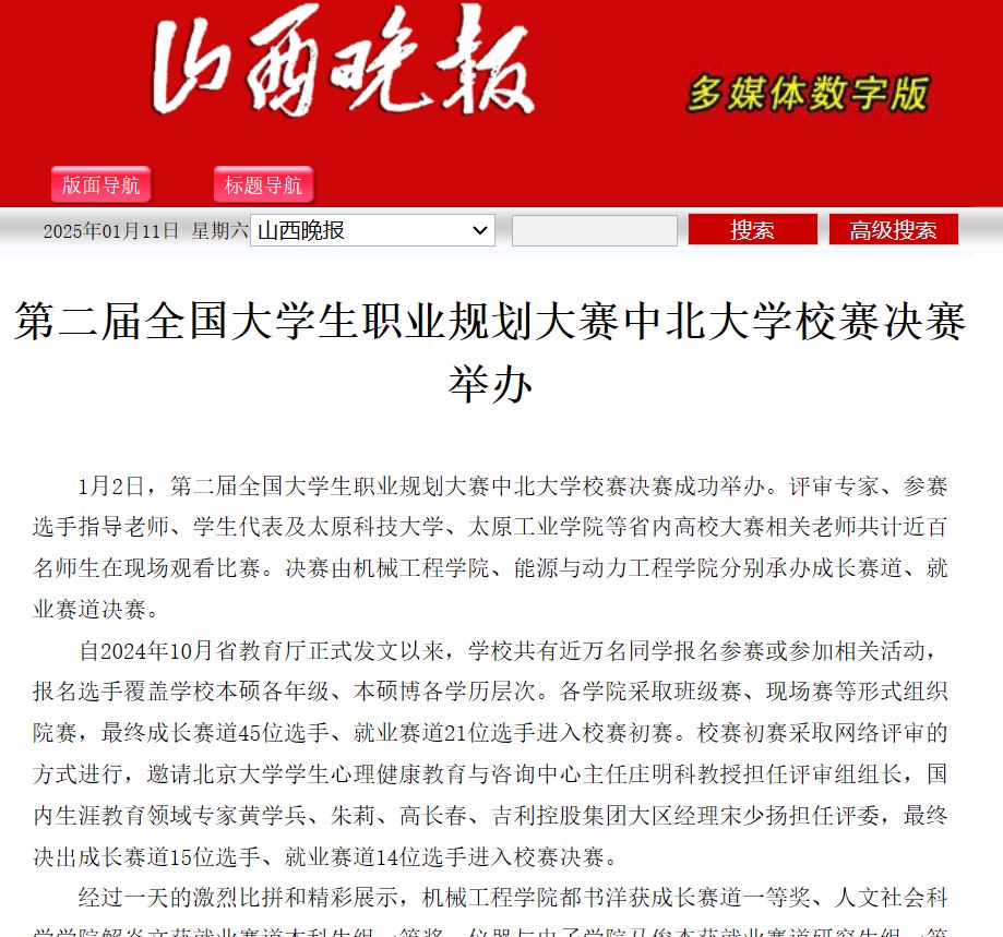 【山西晚报】第二届全国大学生职业规划大赛中北大学校赛决赛成功举办