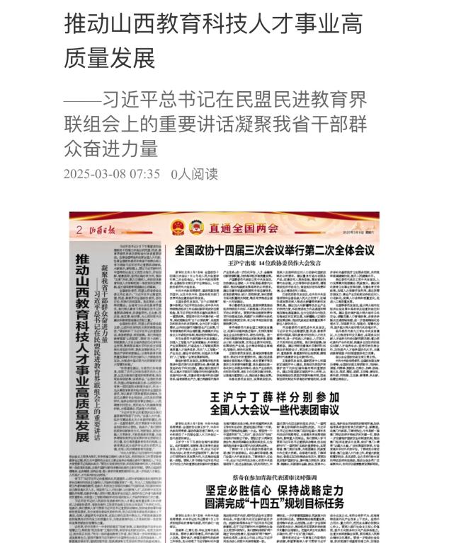 【山西日报】推动山西教育科技人才事业高质量发展 ——习近平总书记在民盟民进教育界联组会上的重要讲话凝聚我省干部群众奋进力量