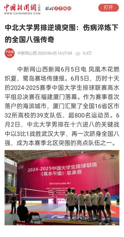 【中国新闻网】中北大学男排逆境突围:伤病淬炼下的全国八强传奇