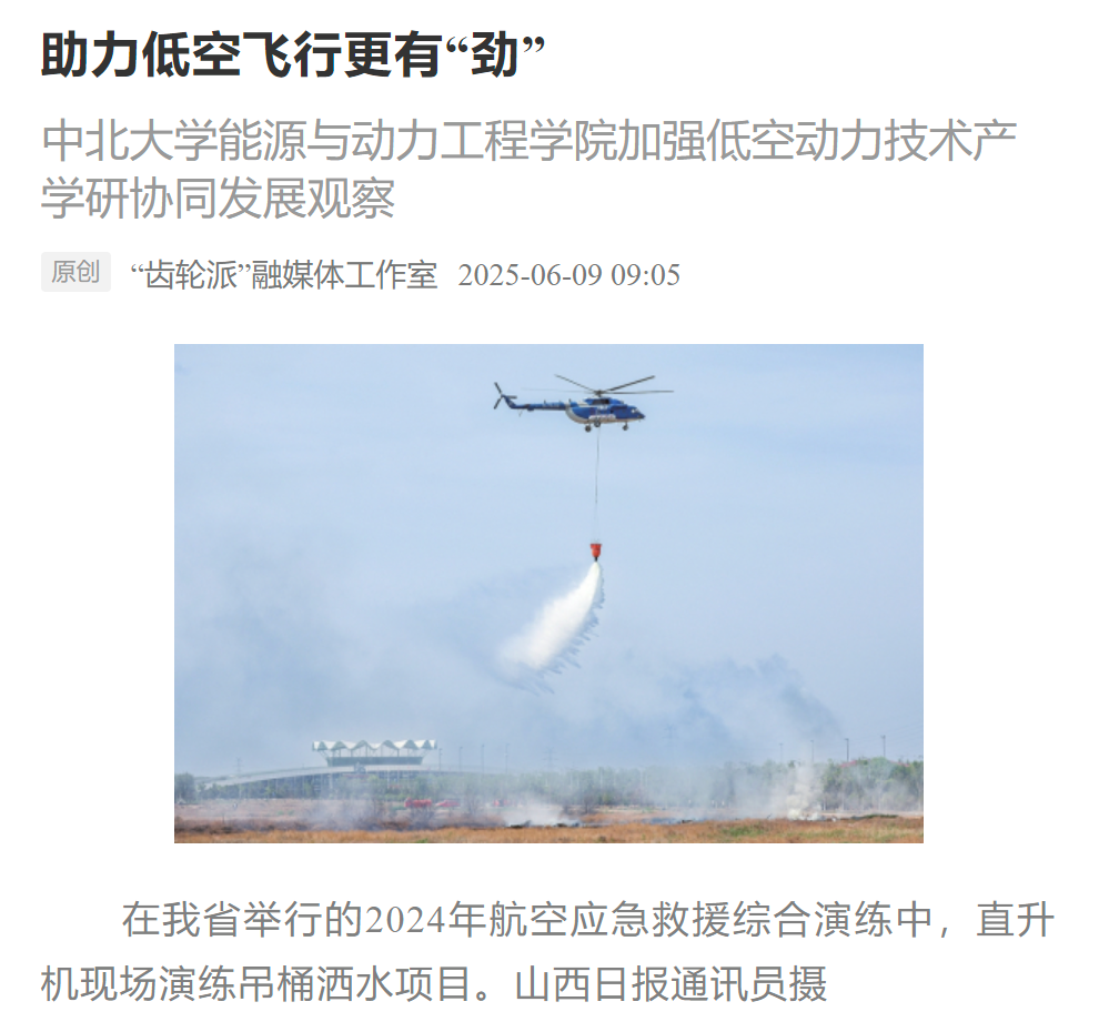 中北大学能源与动力工程学院党委书记胡向明表示,学院将继续发挥学科和科研优势,打造形成独具特色的低空飞行动力研发平台,走好产学研深度融合的特色道路,助力低空动力技术创新和产业发展,为国家和我省低空经济的繁荣贡献力量。(山西日报记者贺锴)
