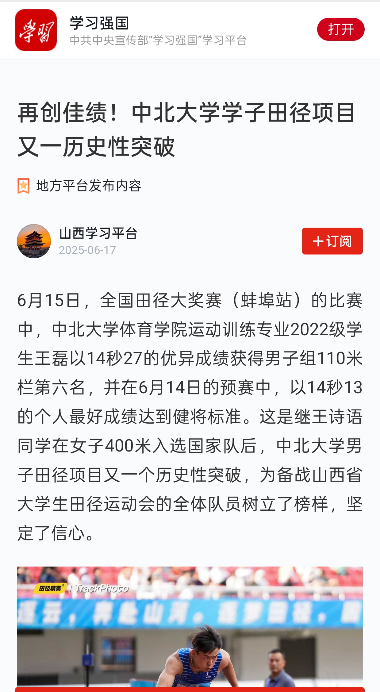 【学习强国】再创佳绩!中北大学学子田径项目又一历史性突破