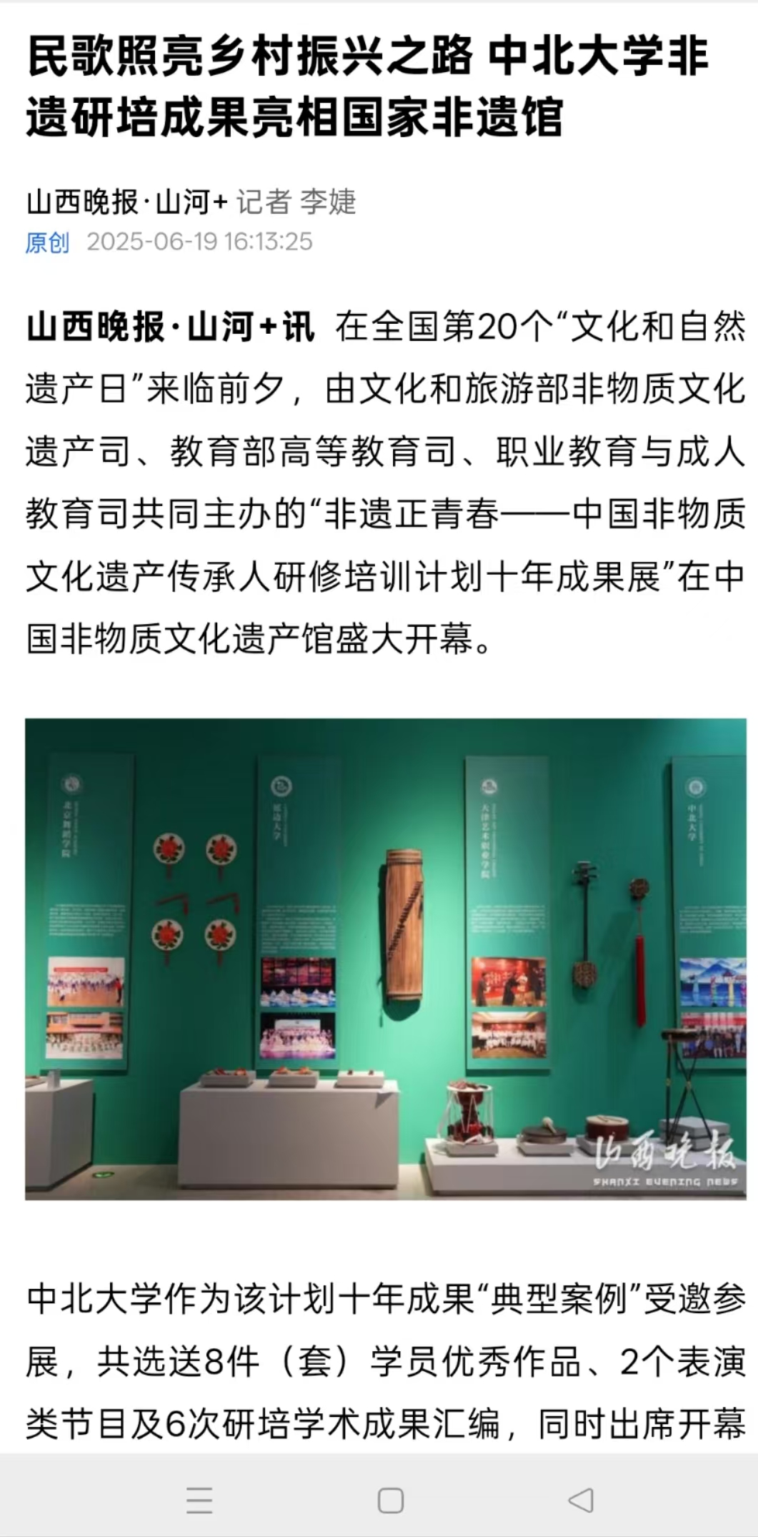 【山西晚报·山河+】民歌照亮乡村振兴之路 中北大学非遗研培成果亮相国家非遗馆