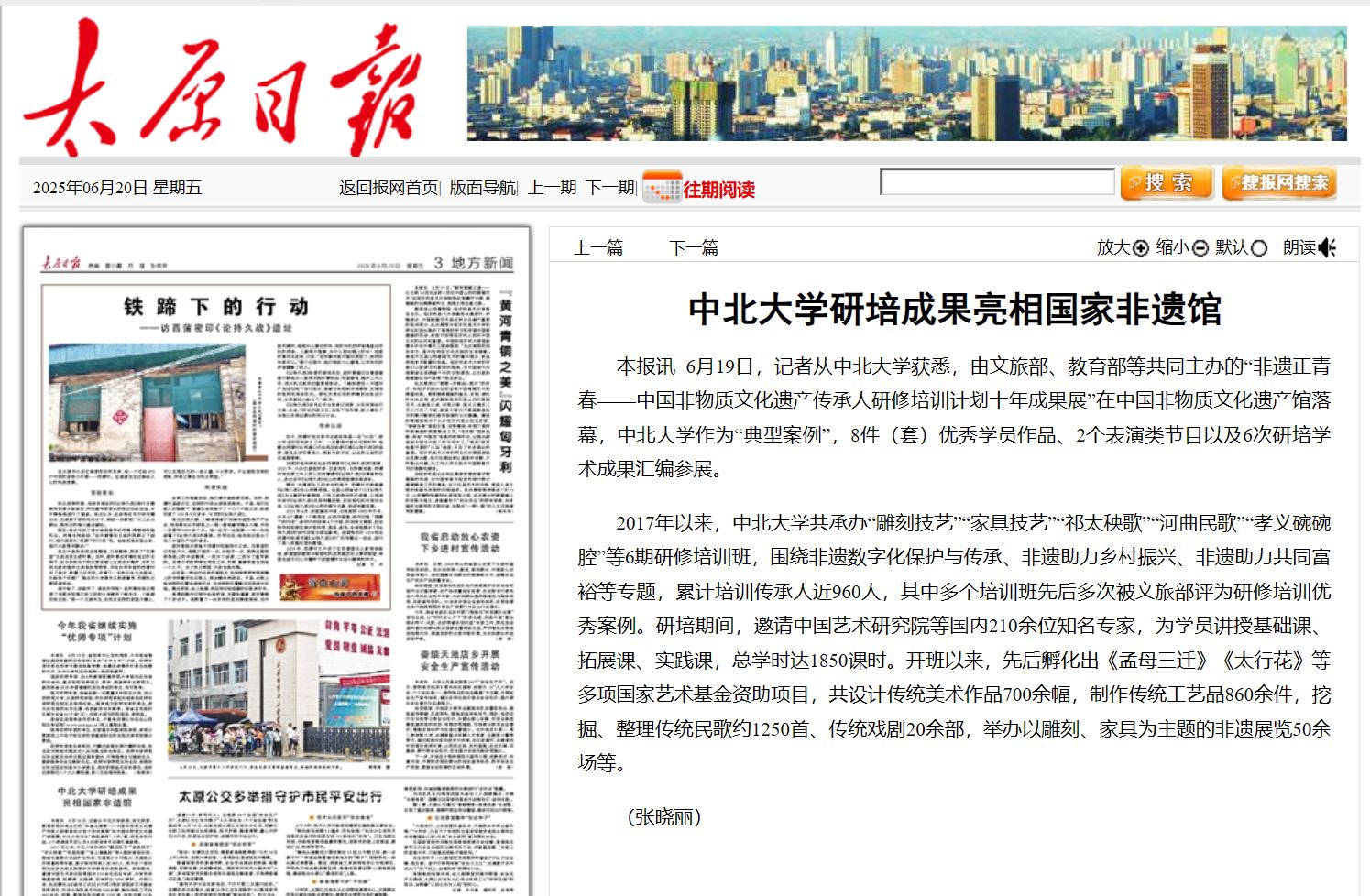 【太原日报】中北大学研培成果亮相国家非遗馆