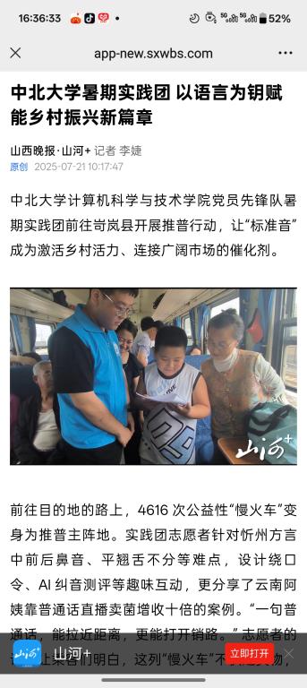 中北大学计算机科学与技术学院党员先锋队暑期实践团前往岢岚县开展推普行动,让“标准音”成为激活乡村活力、连接广阔市场的催化剂。